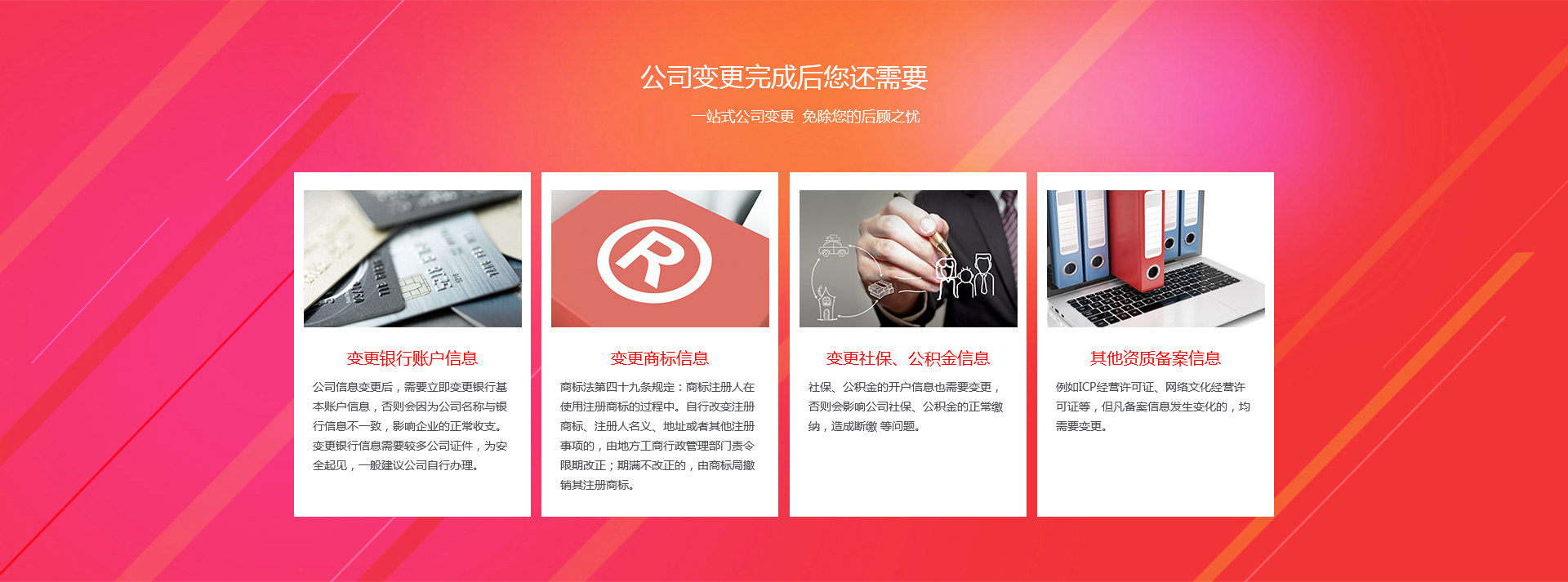 業(yè)務(wù)涉及:代辦各種營業(yè)執(zhí)照(商貿(mào)型、服務(wù)型、科技型、實(shí)業(yè)型企業(yè)等)及會計記賬(建賬建制、稅收籌劃、納稅申報、整理舊帳、所得稅匯算等)等咨詢;我公司以誠信為本,期待與您真誠合作!